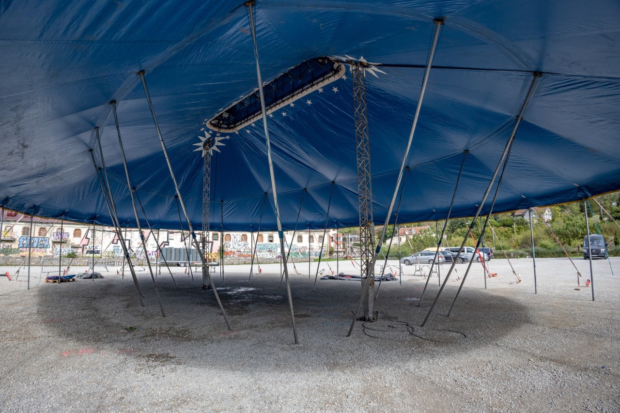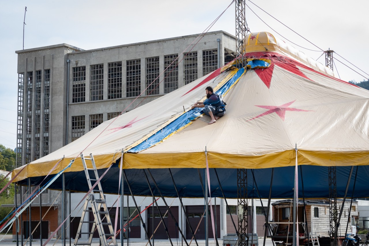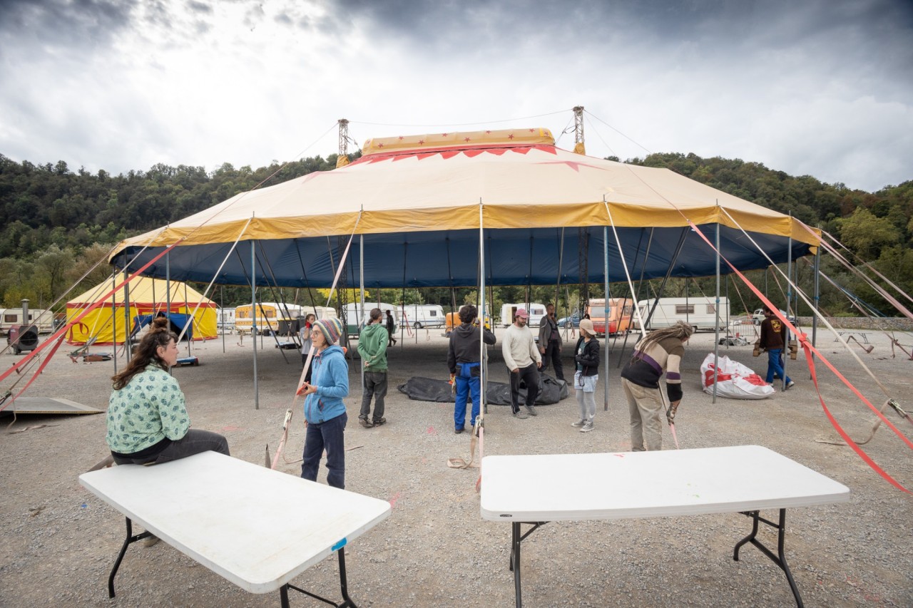 Ca y est, on y est : le chapiteau est monté, le campement est installé et la création a commencée. C'est parti pour quatre semaines d'explorations artistiques et techniques !